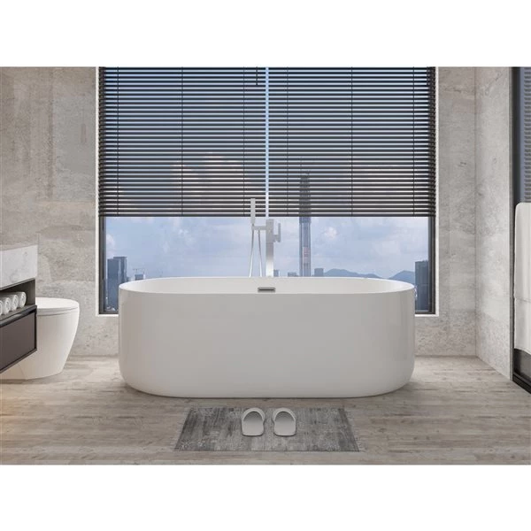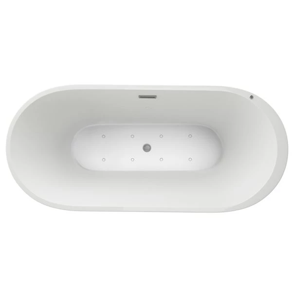 Relax and enjoy a spa experience at home! This freestanding air-jet bathtub is integrated with 8 bottom air-jets. An air-jet system that will invigorate your body and mind with soft and soothing jets. Providing a seamless, symmetrical design and ease-of-use. This tub comes with linear overflow, and an easy to clean pure white acrylic construction. Feel the benefits of a relaxing and therapeutic massage. A contemporary and versatile addition to the home spa.