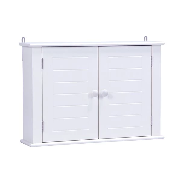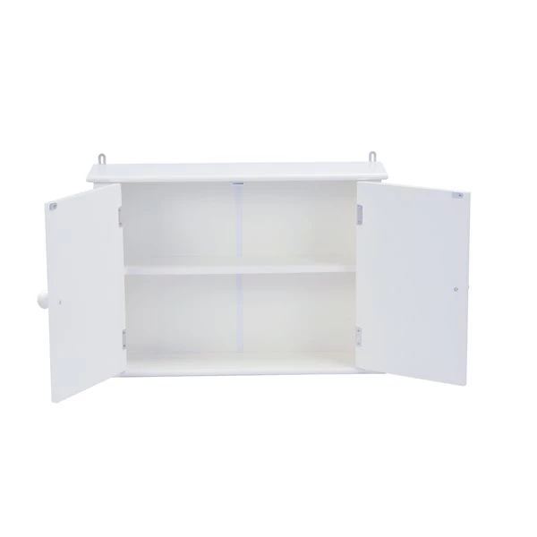 This stylish wall cabinet adds that extra space you need in your bathoom without taking up any much space. Measuring 24-in x 9-in x 24-in, with 2 hinged doors. This slick design offers ample out of sight storage space. A must have for smaller bathrooms.