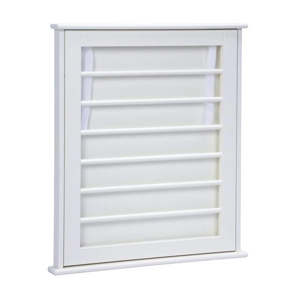 This slim design rack cabinet adds a decorative touch to any bathroom. Hang your towels and your accessories here. Measuring 21-in x 2-in x 24-in, this decorative rack cabinet is useful and ideal for increasing space with style.