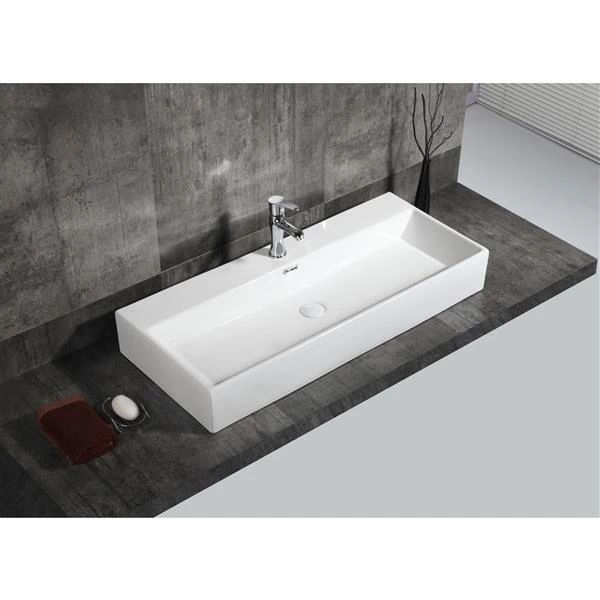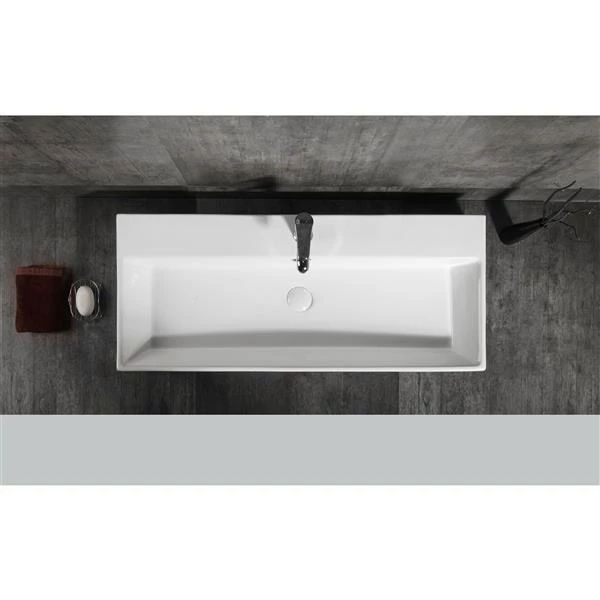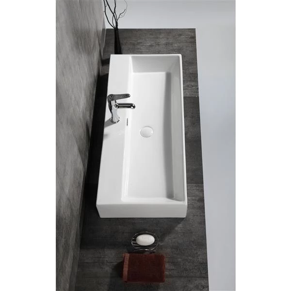 This sink will transform your bathroom with its open rectangular shape. These sharp lines will add a modern and bold aspect to your bath space and become the central piece of attraction. It is planned to be installed with a single hole faucet mount and integrated overflow. Install it you will love it !