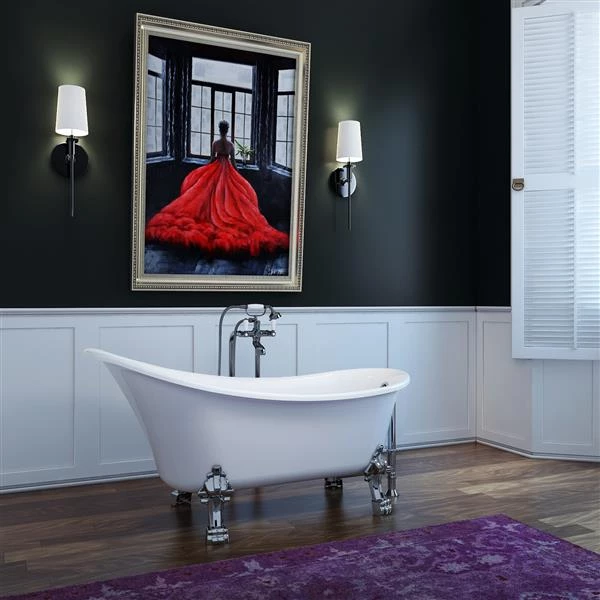 Add elegance to your bathroom with the classic and contemporary lines of the Dora Claw foot tub. The Dora is sure to add sophistication to your bathroom with its luxurious chrome ornate feet, faucet and handheld shower. The pure white acrylic construction features a high backrest for ultimate comfort.