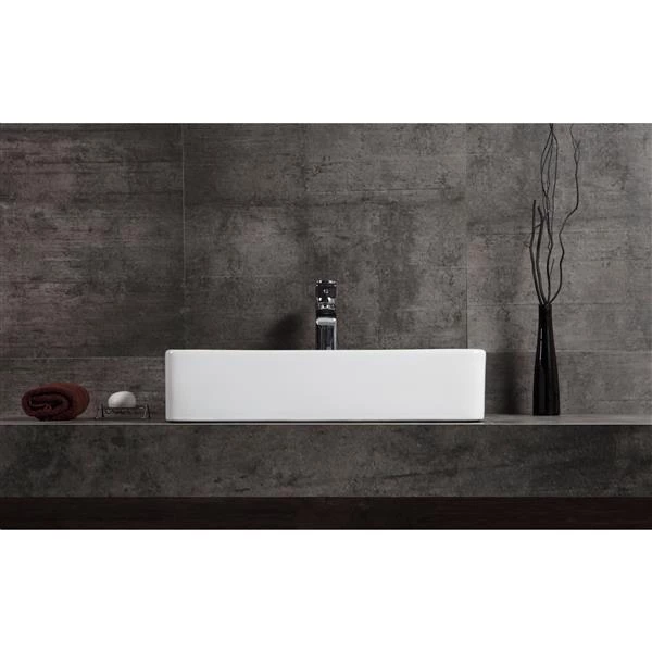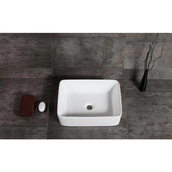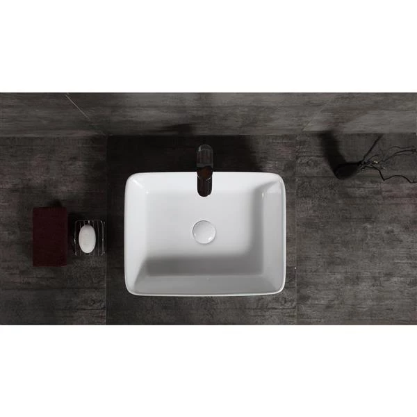 This ceramic sink will add elegance to your bathroom. Made of vitreous China ceramic it features a rectangular shape with rounded corners that maximizes the space usage. Its charming design will enhance your bathroom.