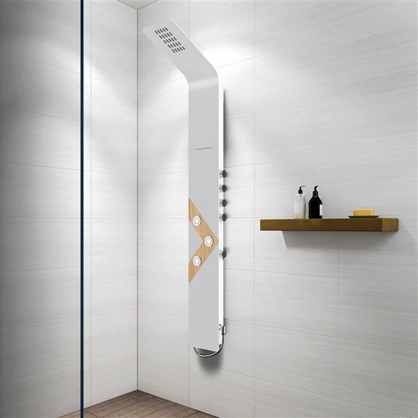 This Vista IX shower panel system by A&E Bath® features a rain shower head and pressure balanced valve. One-year limited warranty.