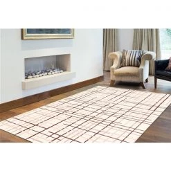 A&E Bath & Shower Onslow 5-ft x 7-ft Cream/Petrol Grey Rectangular Indoor Geometric Rug